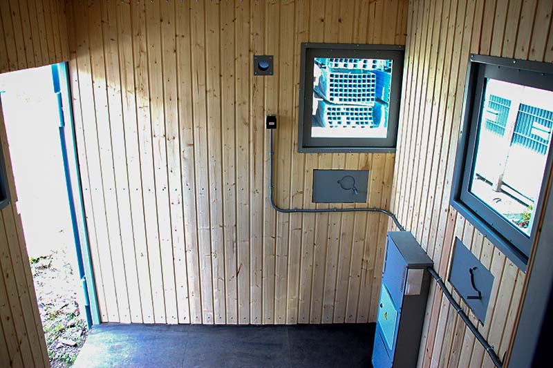 Изнутри проходная обшита деревянной вагонкой, исключающей возгорание, поражение электрическим током и не выделяющей ядовитые газы при нагревании.