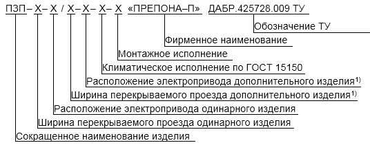 | Варианты исполнений ПЗП | Одинарное, с шириной перекрываемого проезда 3 м; 4 м; 5 м; Двойное, с шириной перекрываемого проезда 6 м, 8 м, 10 м; |