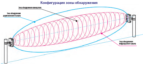 Использование двух физических каналов обнаружения — радиоволновой (РЛ) и инфракрасный (ИК) по схеме «И» позволяют существенно повысить помехоустойчивость.